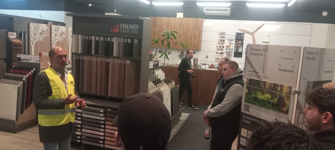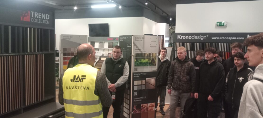 Společnost JAF HOLZ patří mezi významné dodavatele dřevěných a velkoplošných materiálů pro stavebnictví a truhlářskou výrobu, jako jsou konstrukční hranoly, OSB desky, překližky, dýhy či podlahové materiály . Žáci tak měli možnost seznámit se s širokým sortimentem materiálů, které se běžně používají v praxi jejich oboru.