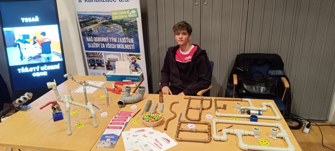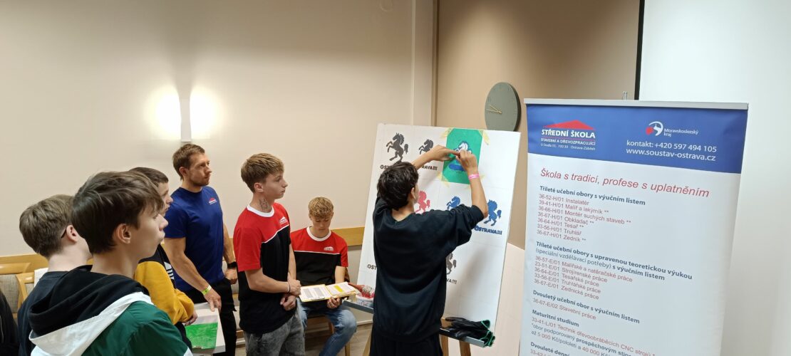 Řemeslo má zlaté dno. Jednalo se o interaktivní soutěž praktických dovedností pro žáky 9. tříd, a konala se v prostorách K-Tria ve středu 8. a ve čtvrtek 9. října 2025. Pro soutěžící družstva jsme si připravili malování obrázku a ukázku oboru instalatér.